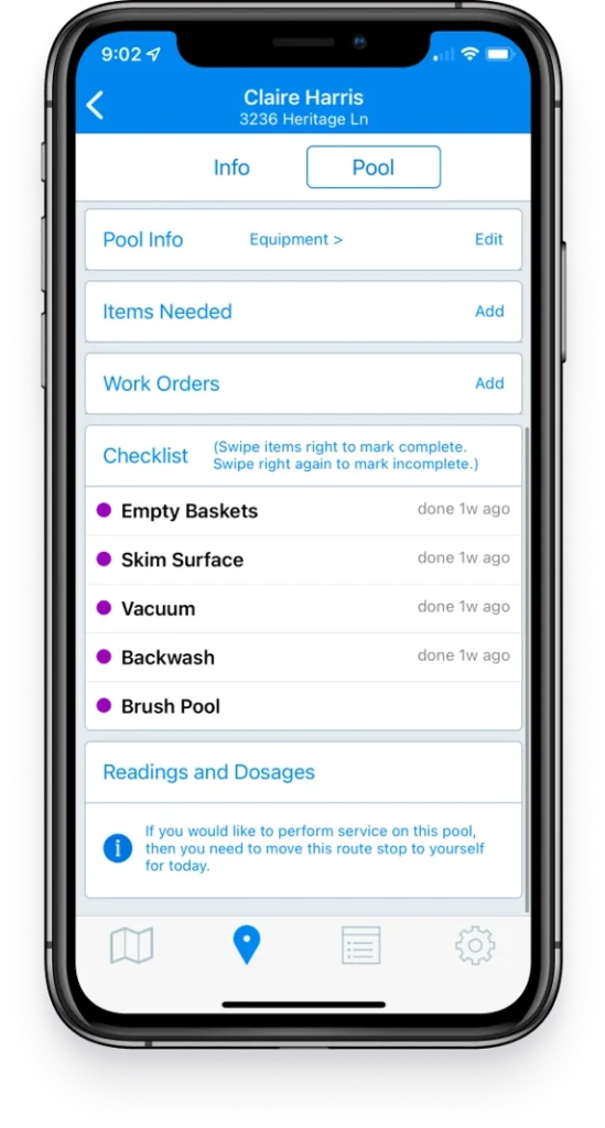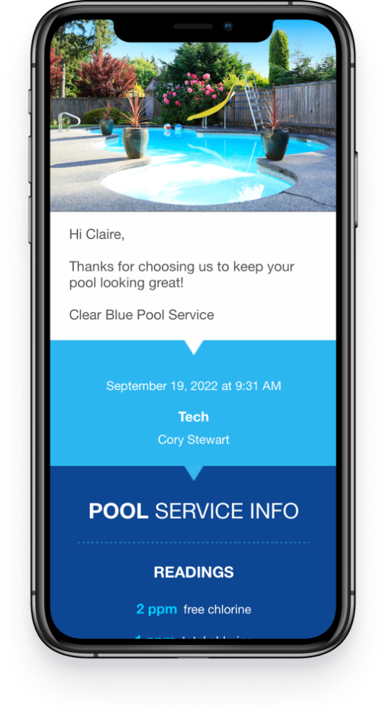Not at all. We do it for you. Every visit is logged in our system and you’ll receive a report with the chemical dosages, treatment notes, and updated pool photos so you’re always in the loop.